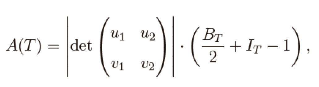 em que 𝘉𝑇 é o número de pontos do reticulado sobre a borda e 𝐼𝑇 é o número de pontos do reticulado no interior de 𝑇.