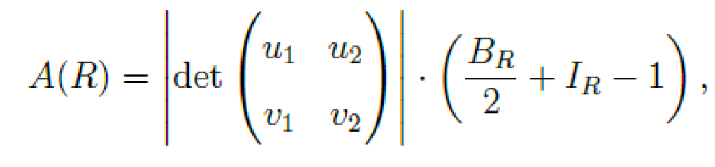 em que 𝐵𝑅 é o número de pontos do reticulado sobre a borda e 𝐼𝑅 é o número de pontos do reticulado no interior de 𝑅.