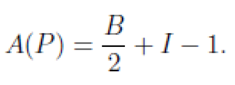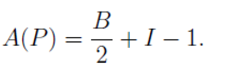 em que 𝐵 é o número de pontos do reticulado sobre a borda e 𝐼 é o número de pontos do reticulado no interior do polígono 𝑃.