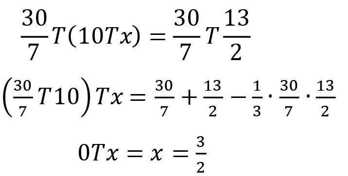 VIII) Finalmente, mostraremos que existe elemento unidade. Para isso, consideremos 𝑥 ℚ tal que 𝑎𝑇𝑥 = 𝑎, para qualquer 𝑎