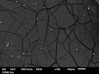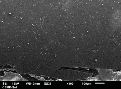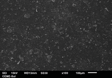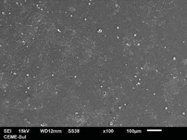 Observational analysis of the samples was conducted using a JSM-6610LV scanning electron microscope with exposure to a 10 kV accelerating beam. The samples observed by SEM were previously tested by DMA, coated with gold via sputtering, and packed in an aluminum sample holder. In addition to the concomitant EDS analysis, two sample locations were observed: the top and film fractures.