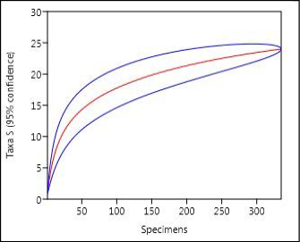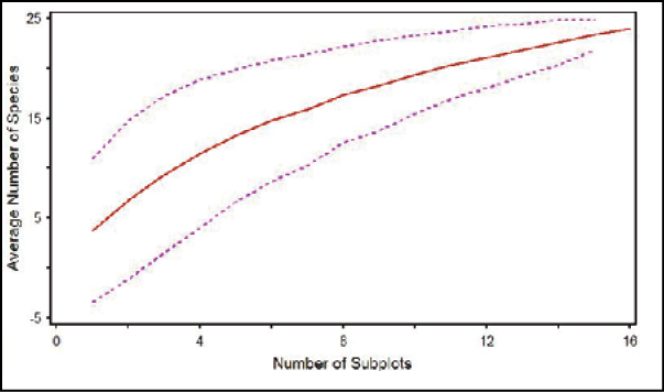 Figure 4 – Collection effort curves considering the sampling unit (survey point) in the Serra dos Toledos Biological Reserve, municipality of Itajubá, Minas Gerais State, Brazil