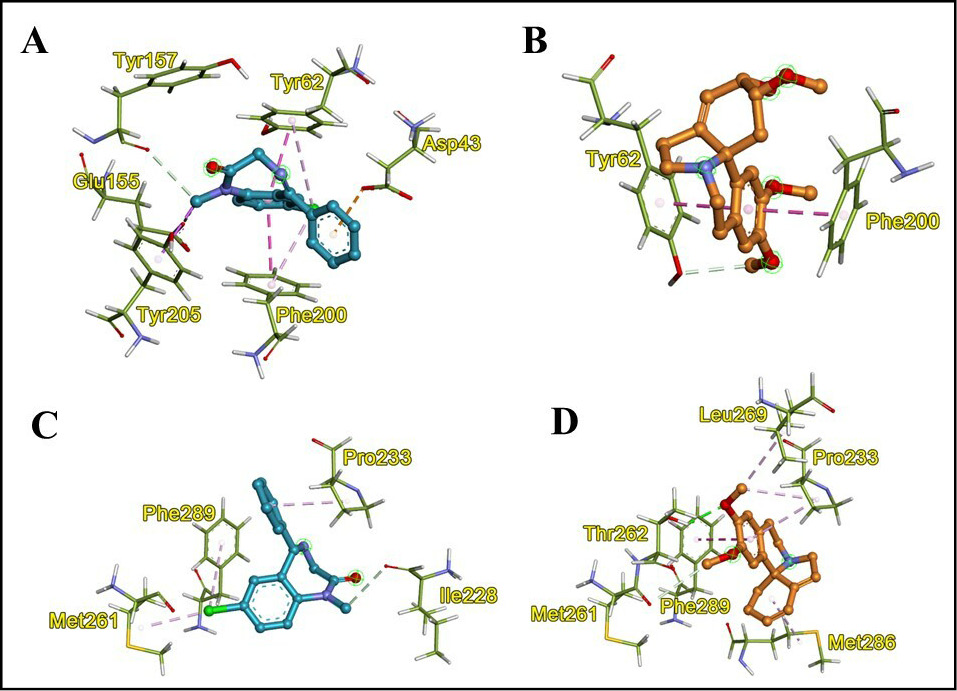 In the 6X3X model the amino-acid residues ILE 228, PRO 233, MET 261, THR 262, LEU 269, MET 286 and PHE 289, with emphasis on PRO 233, MET 261 and PHE 289, there is a consensus of these interactions (Table 4), corroborating the effects of mulungu extracts as like benzodiazepines (Flausino et al., 2007; Sahila et al., 2015).