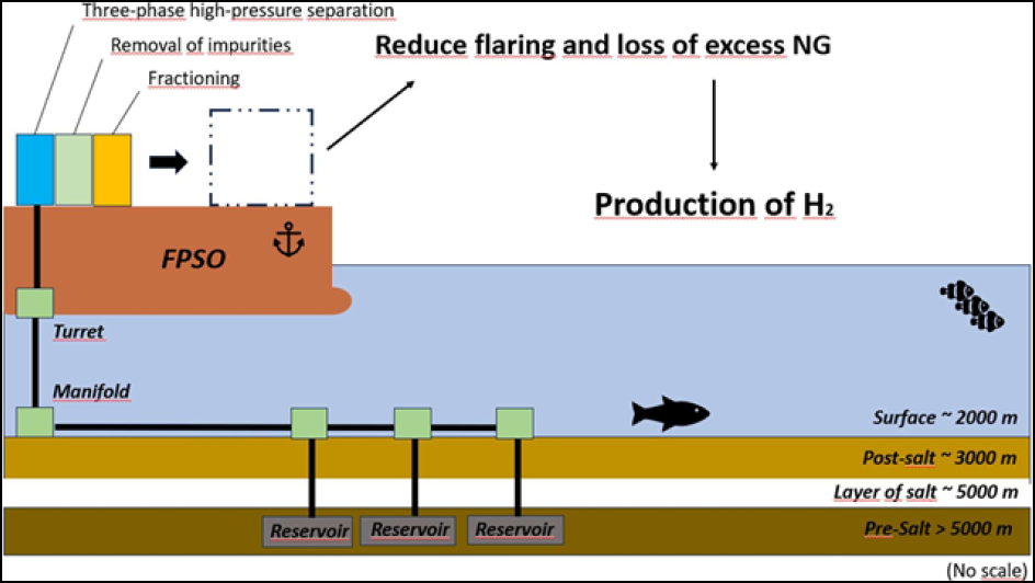 This system will provide a new alternative for E&P of surplus offshore Associated NG, in addition to those already being studied [1]. In other words, the aim is to reduce flaring and loss of this valuable resource by using it to produce hydrogen.