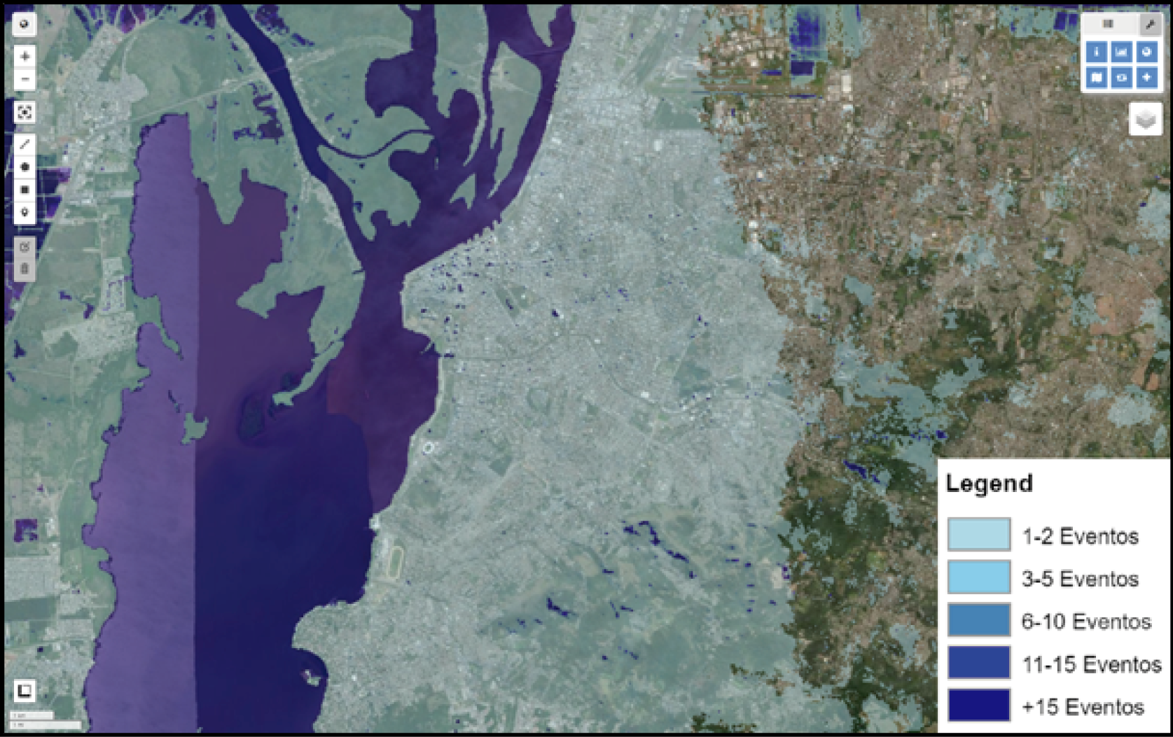 This combination of multispectral and radar data offers a comprehensive perspective, covering both historical aspects of flooding and accurate detection in adverse meteorological conditions; this study therefore provides valuable data for disaster planning and management in urban areas vulnerable to flooding, contributing to the reduction of the socioeconomic and environmental impacts of these extreme events (Declaro; Kanae, 2024).