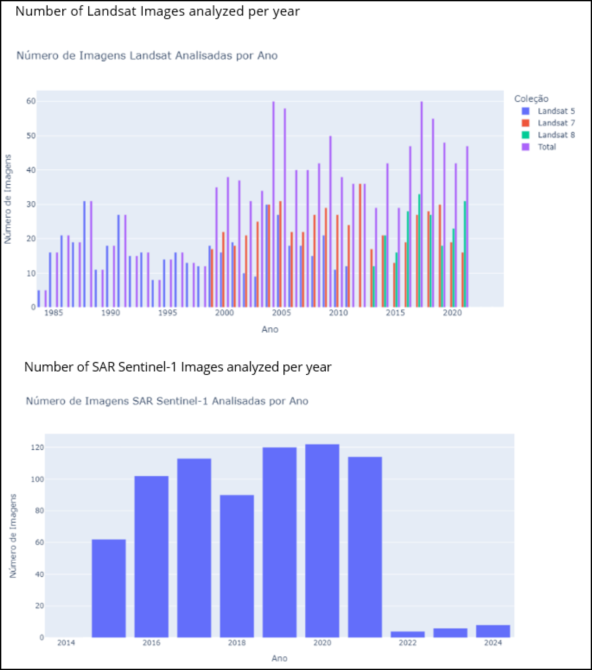 Sentinel-1 also has its limitations. The main one is its more restricted temporal coverage, since the mission only began in 2014, which limits the historical analysis of flood events compared to Landsat.
