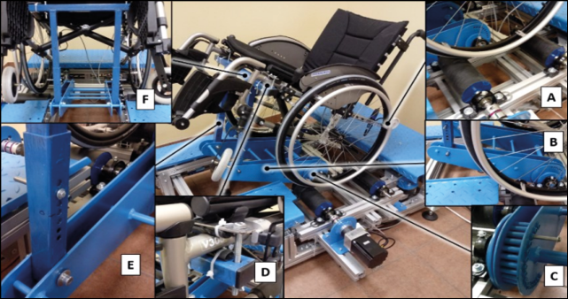 Through the applied resistance, it is possible to assess the user’s performance, and the system includes an adjustment for the leg support inclination. In addition to this prototype, the model by Wieczorek and Warguła (2019) allows for a comprehensive analysis of various parameters, such as biomechanical parameters, the position of the center of mass, wheelchair speed, acceleration, propulsive force, electromyographic activities of muscles, and other analytical parameters.
