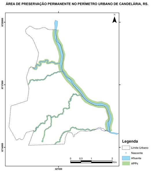Figura 4 – Mapa de APP do perímetro urbano de Candelária, RS
