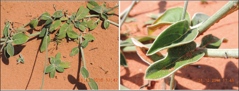 Figure 6 – Froelichia tomentosa (Mart.) Moq. (Amaranthaceae) A. Habit; B. Leaves detail