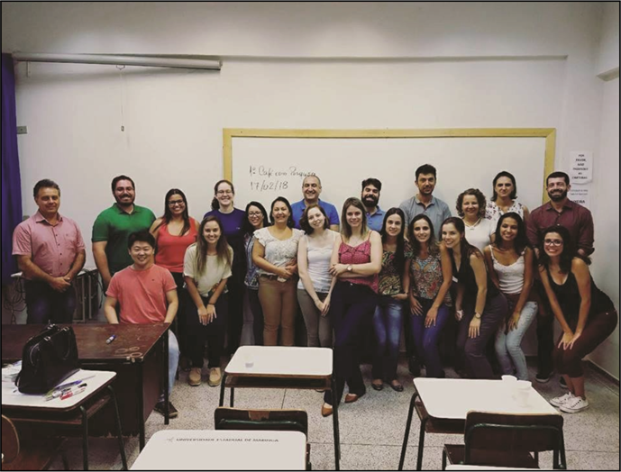 The major challenge is to develop an holistic perspective among the group participants, as each one has a dominant research area. Given this situation, a periodical meeting called Breakfast Research (Café com Pesquisa) is carried out. Figure 1 shows the participants of the first Breakfast Research meeting, conducted on February 17, 2018. In Breakfast Research, members of each research approach present their studies and have the opportunity to discuss it with other members, in a way to improve the understanding of the influences of one system in the others, besides fostering harmony among the participants, especially in breakfast time. In these meetings, future work and researches are also set out, as well as the definition of the events and journals for publication.