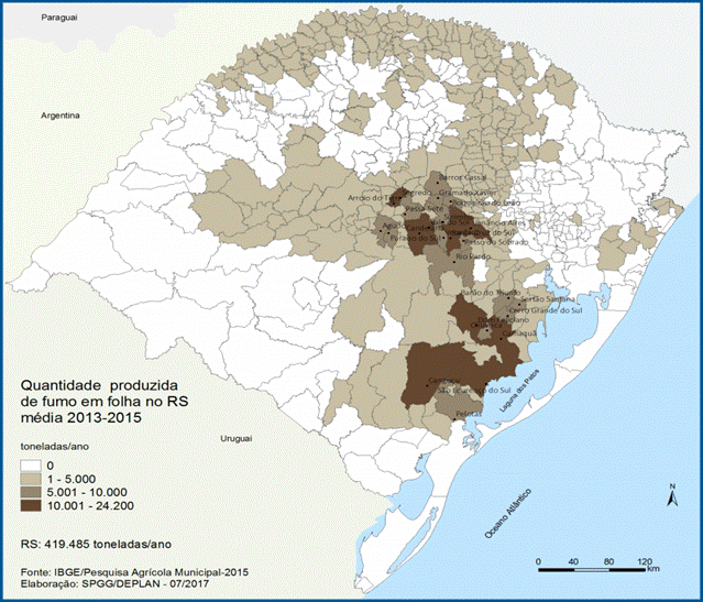 GOVERNO DO RIO GRANDE DO SUL [Internet]. Secretaria de Planejamento, Orçamento e Gestão [cited 2019 fev 15]. Atlas socioeconômico do Rio Grande Do Sul. Economia. Fumo. Avaliable from: https://atlassocioeconomico.rs.gov.br/fumo.