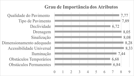 Figura 4 – Grau de importância dos atributos de infraestrutura de calçadas