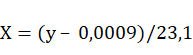 Em que: X = concentração final de lignina (mg mL-1); y = densidade óptica obtida na leitura da amostra; 0,0009 = valor médio da intercepção; 23,1 = média do coeficiente de espectrograma obtida nas curvas padrão para espécies arbóreas no referido estudo.