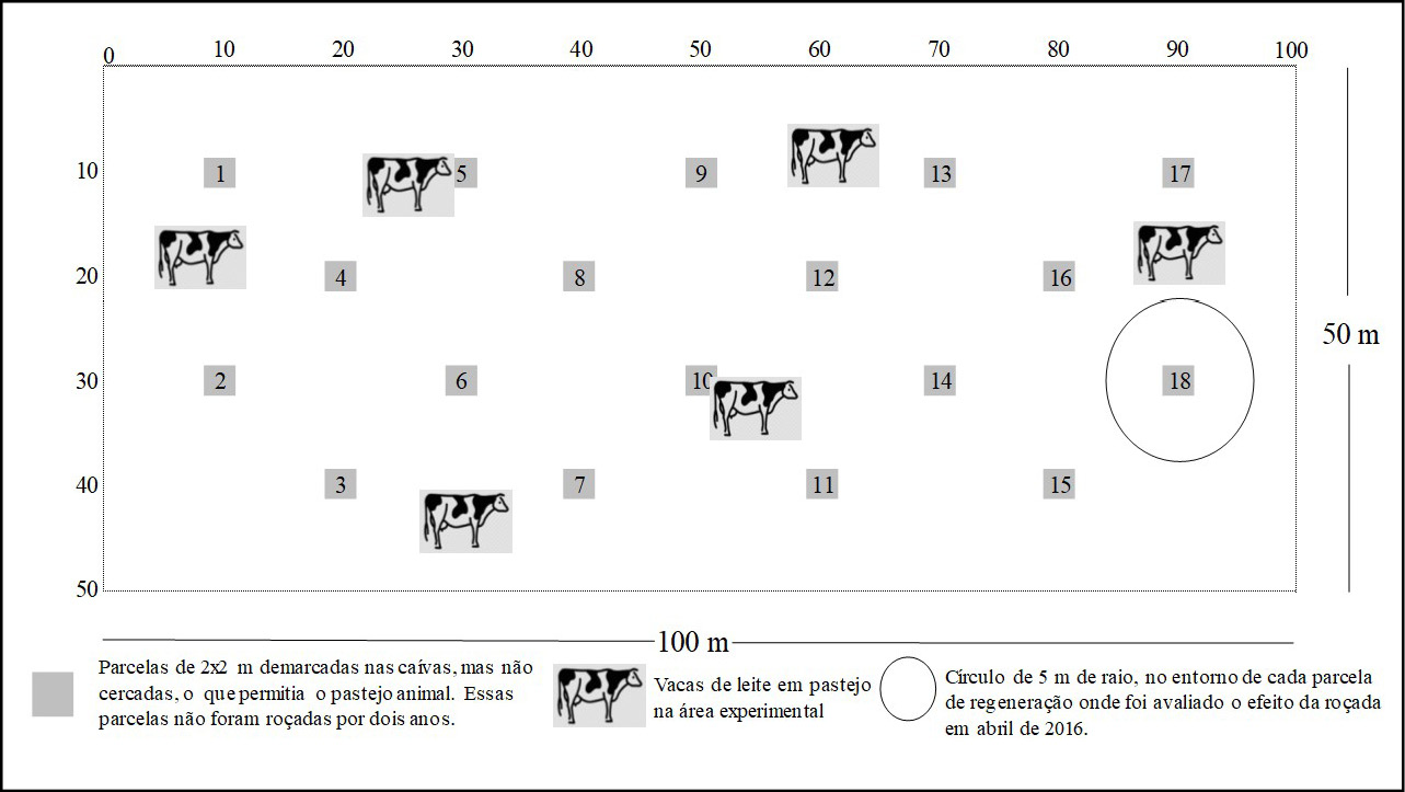 Ao adotar técnicas como correção do solo, adubação, piqueteamento e sobressemeadura do pasto, foi possível conciliar aumento da produtividade do pasto presente no estrato herbáceo das caívas, sem comprometer a regeneração florestal característica desses remanescentes manejados. Cabe ressaltar aqui que a intensificação do uso da pastagem proposta foi com níveis moderados de intensificação, ou seja, a aplicação de insumos e o controle da carga animal prevê produtividade média da pastagem, não a máxima produtividade, o que exigiria a aplicação de quantidade muito superiores às utilizadas neste trabalho.