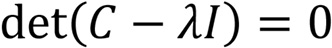 A partir da matriz de variância-covariância, os valores próprios são calculados como as raízes da equação característica, na Equação (8):