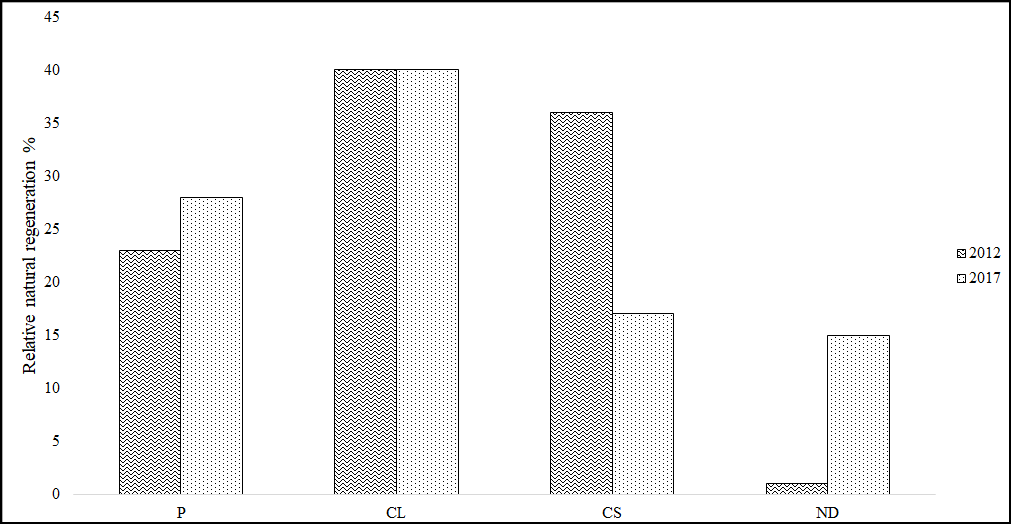 Figure 1 – Relative natural regeneration by ecological group between 2012 and 2017
