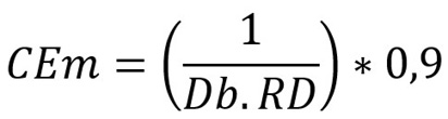 Em que: TAPPI = Technical Association of Pulp and Paper Industry; CEm = consumo específico da madeira (m³ tsa-1); Db = densidade básica ponderada (g cm-3), RD = rendimento depurado (decimal); AAC = álcali ativo consumido (g L-1); AAA = álcali ativo aplicado (g L-1); AAR = álcali ativo residual (g L-1).