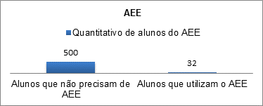 Pode-se observar pelo quantitativo de alunos, que se trata de uma escola relativamente pequena e que por sua vez possui um número considerável de alunos com indicação para o atendimento educacional especializado, representando 6,4% do total de alunos matriculados na escola.