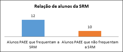 Apesar de o aluno ter garantido seu direito a Sala de Recurso Multifuncional, no contra turno escolar, para complementar ou suplementar seus estudos, nem todos os alunos usufruem desse atendimento por motivos diversos. Entre os motivos pesquisados encontrou-se: a família não pode trazer; a família não quer trazer; a família prefere outro atendimento especializado, como o que é feito nas APAES. Portanto, não são todos os alunos público alvo que frequentam a Sala de Recurso Multifuncional no contra turno, contabilizando um total de apenas 12 atendidos.