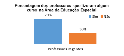 Após compreender o trabalho desenvolvido, buscou-se indagar os professores através de questionário suas ressalvas sobre o AEE da Unidade de Ensino. As questões estabelecem uma linha de investigação para permear as características dos professores envolvidos. Todavia através do questionário, descobriu-se que seis (6), ou seja, 30 % dos professores nunca realizaram curso de formação sobre a educação especial. Um indicativo interessante, que pode indicar uma lacuna presente na formação teórica desta porcentagem de professores.