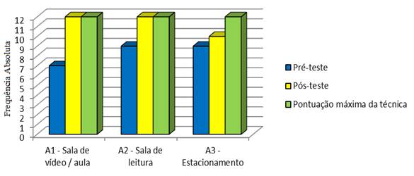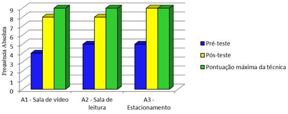 Ao analisar a ficha de registro do pós-teste, foi possível identificar que a estudante realizou corretamente e com eficiência os 12 comportamentos na sala de aula/vídeo e na sala de leitura (A1 e A2, respectivamente).