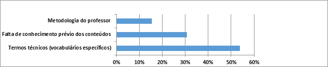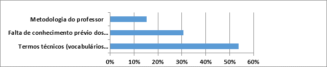 Foram identificados alguns entraves para a execução do trabalho de interpretação no IFS, a começar pela metodologia do professor aliada à falta de conhecimento sobre a forma de aprendizagem dos alunos surdos e, principalmente os termos técnicos das disciplinas, que aparecem como os maiores empecilhos para os intérpretes desenvolverem o trabalho com eficácia.