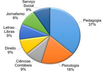 Entretanto, ressalta que as questões que envolvem mulheres com deficiência são diferentes das situações vivenciadas pelos homens com deficiência, além de também não serem iguais às demandas das mulheres sem deficiência, visto que as opressões, preconceitos, invisibilidade e silenciamentos que as mulheres com deficiência sofrem diariamente devem ser discutidos com o intuito de promover ações que lhes possibilitem melhor qualidade de vida (SILVA, 2020). Diante disso, apresentamos os dados quantitativos dos cursos em que as universitárias estão inseridas.