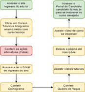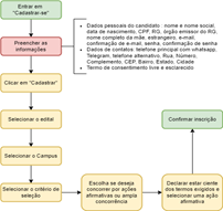 Com o resultado da análise das entrevistas e a revisão da literatura feita, foi elaborado o fluxograma do processo de inscrição nos portais de ingresso e do candidato, com recorte nos cursos técnicos integrados, incluindo as ações afirmativas no fluxo (Figura 1).