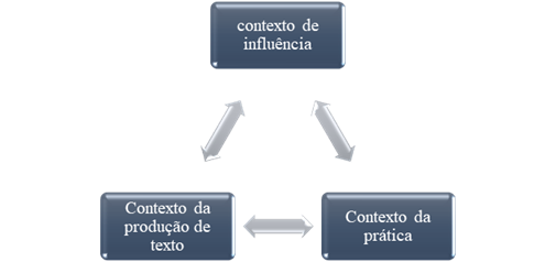Resultante de algumas críticas ao modelo inicial de ciclos de políticas e por considerarem que esse não dava a atenção merecida às disputas e tensões entre o macro e microcontexto no curso da formulação e atuação das políticas educativas, Bowe, Ball e Gold (1992) propuseram um modelo que não obedece à hierarquia e linearidade obrigatória, contemplando fundamentalmente três contextos inter-relacionados: contexto de influência (onde normalmente as políticas públicas são concebidas e iniciadas); contexto de produção de texto (dada pela noção de representação política, disputas e debates entre aqueles que controlam os interesses políticos, consiste na articulação intencional de textos legais oficiais e textos políticos, comentários formais ou informais sobre os textos oficiais, pronunciamentos oficiais etc.); e contexto de prática (é onde a política está sujeita à interpretação e recriação, os textos são lidos diferentemente e são adaptados de acordo aos contextos locais e institucionais, em que as consequências reais são experienciadas) (Bowe; Ball; Gold, 1992; Mainardes, 2006).