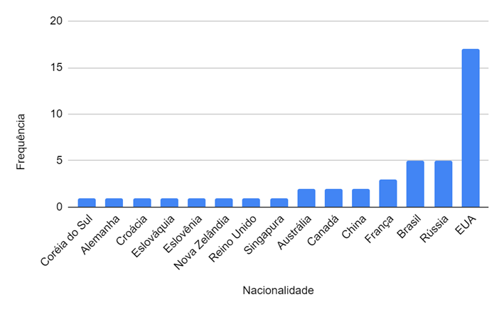 Dos países identificados, apenas produções científicas do continente africano não foram contempladas na revisão sistemática. A ausência de pesquisas africanas sustenta a afirmação de Maree (2018) sobre o número limitado de investigações sobre superdotação na África, exceto às contribuições científicas da África do Sul. Em contrapartida, os Estados Unidos se destacaram com 17 pesquisas na área de superdotação artística, o que pode estar relacionado com o pioneirismo do país na área da avaliação psicológica, inteligência e superdotação (Hayes; Embretson, 2023).