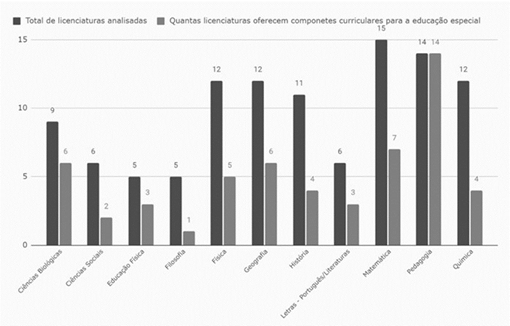 Licenciaturas que oferecem componentes curriculares com a temática da Educação Especial