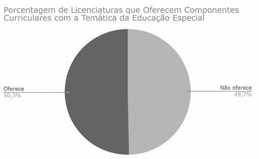 Figura 5 – Porcentagem de licenciaturas que oferecem componentes curriculares com a temática da Educação Especial