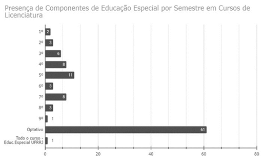 Observa-se no próximo gráfico informações sobre as demais licenciaturas e seus componentes curriculares com ênfase na Educação Especial: