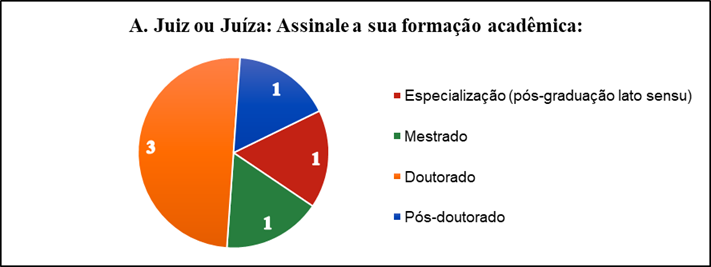 O Gráfico 2 demonstra que 4 dos 6 juízes participantes possuem, no mínimo, o nível de doutorado, em sua formação acadêmica.