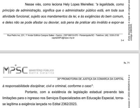 Após a análise geral do Edital investiga-se uma análise detalhada dos documentos legislativos, incluindo o documento em questão e seus anexos, bem como e-mails de respostas e decisões das autoridades pertinentes, como a SED/SC e o MP/SC, frente ao Capacitismo e as práticas discrinatórias identificadas em todo o certame.