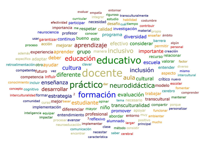 La dimensión de la neurodidáctica, aunque relativamente reciente en los currículos de formación del profesorado, también fue muy valorada, lo que sugiere un creciente interés entre los profesionales por los enfoques que explican el funcionamiento cognitivo y emocional del cerebro en el proceso de aprendizaje. Autores como Tokuhama-Espinosa (2019) y Carew & Magsamen (2010) señalan que la formación con base neurocientífica contribuye a prácticas docentes más empáticas, eficaces y personalizadas, lo que se evidenció tanto en los datos cuantitativos como en las narrativas de los grupos focales.