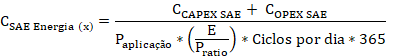 CSAE Energia (x): Custo do serviço de armazenamento de energia elétrica em um determinado segmento do sistema elétrico de potência, por energia [$/kWh];