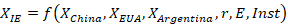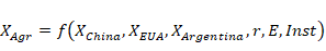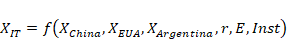 Four equations will be tested: a general equation and three referring to each of the exporting sectors of the state's economy. All of them were transformed into rates to obtain the elasticities. The equations are presented below:
