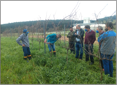 A primeira atividade prática foi um dia de campo sobre “poda em vitis vinífera”, realizada no campo experimental da UFSC. A partir do diálogo com os viticultores, em que estes descreveram como realizavam a poda em suas unidades produtivas, foram feitas algumas demonstrações práticas de como realizá-la no sistema de condução em espaldeira.