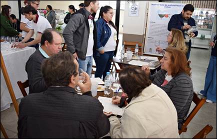 Análise degustativa dos vinhos produzidos pelos vitivinicultores e dos vinhos elaborados no curso de vinificação. |