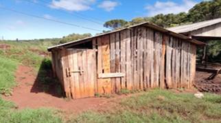 Entre os agricultores entrevistados, dois casos chamam a atenção. O primeiro, Figura 4, com menor PB (R$ 34.700,00), é uma família formada pelo marido e a esposa em faixa etária acima de 40 anos, com média de 7 anos de estudo e sem um sucessor. A produção bruta vem do leite (85%), grãos – soja (15%) e autoconsumo. A terra está dividida entre área própria (15,73 ha) e arrendada (19,36 ha). O pagamento do arrendamento consome uma parcela da receita, elevando o consumo intermediário (CI), e restando 47% do PB na forma de renda agrícola (R$ 16.561,50), fato que se reflete no nível de capitalização e qualidade das benfeitorias.