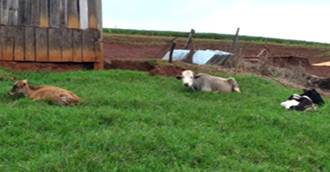 Nas lavouras temporárias, é destaque a produção de soja, destinada à comercialização, e do milho usado na alimentação do gado. A produção de origem animal consiste em um rebanho misto, embora alguns usem genética de ponta, ver Figura 2. O rebanho misto, para Pereira (2012), vem do cruzamento entre raças de genética inferior e de genética mais apurada. Animais de genética inferior têm maior aptidão para a produção de carne, já animais com genética mais apurada possuem potencial produtivo muito superior para a produção de lácteos.
