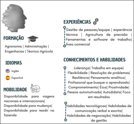 5) Coleta de Dados: no dia 21 de março 2022, a busca no LinkedIn foi realizada com o termo “Agriculture Specialist”, para contemplar empresas multinacionais, e o termo “pecuária”, pois outras palavras não traziam resultados relevantes. Os filtros aplicados em ambas as buscas foram: a) data do anúncio: vagas disponíveis em fevereiro de 2022; b) nível de experiência: júnior, pleno, diretor e executivo; e c) tipo de vaga: integral. Para as vagas de “Agriculture Specialist” foram encontrados 21 resultados: uma vaga era repetida e três não informavam os requisitos exigidos, restando 17 vagas. A pesquisa com o termo “pecuária” resultou em 52 vagas. As vagas desconsideradas foram: duas repetidas, um contrato temporário, oito não se enquadravam (por exemplo: cozinheiro, técnico de segurança do trabalho e encarregado), e em 11 não informavam os requisitos exigidos, restando 30. Para análise final foram selecionadas 47 vagas.