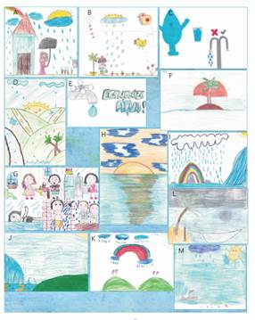 Desenhos que remetem a água como importante líquido que sacia a sede dos diversos seres, foi primeiramente citado. É possível verificar nesses desenhos algumas práticas, como os indivíduos se hidratando, regando flores, verduras e legumes. O segundo tema mais bem representado foi a chuva como elemento importante para o abastecimento de oceanos, rios e cachoeiras. Em muitas ilustrações, foram retratados os temporais que são frequentes na região e essas representações corroboram com a afirmação de que a representação social está impregnada de situações vivenciadas cotidianamente.