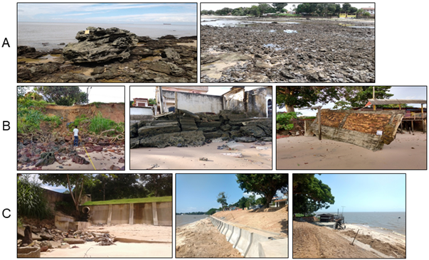 Esses dados sinalizam uma situação de baixa erosão, que é justificada pela ocorrência de falésias sedimentares margeadas por vias de transporte e pela ação de mesomarés. A orientação NE-SW da linha de costa facilita a influência de ondas que se deslocam de norte para sul, na baía de Marajó, com alturas que podem atingir de 1 a 1,5 m. A infraestrutura urbana com rede de microdrenagem inadequada ou sem manutenção, possibilita o escoamento livre das águas pluviais que atingem facilmente o rebordo das falésias.