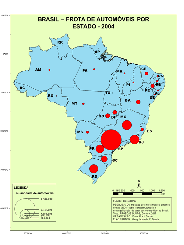 Figura 08– Brasil - Frota de automóveis por Estado – 2004