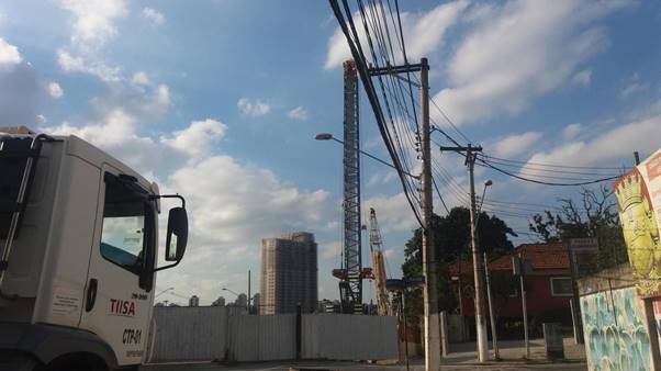 Foto 1 — Obras da estação Vila Sônia do metrô (na Avenida Francisco Morato), ao fundo um novo empreendimento imobiliário em construção.
