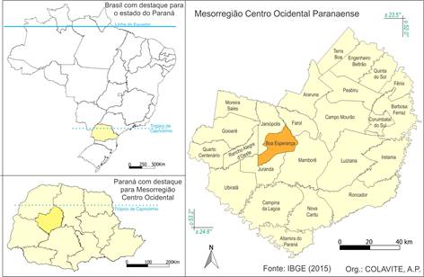 Boa Esperança é um município brasileiro do Estado do Paraná que se localiza na Mesorregião Centro Ocidental Paranaense, como é possível visualizar no Mapa 1.