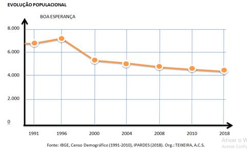 Gráfico 1 — Evolução Populacional no município de Boa Esperança, de 1991 a 2018.