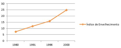 Gráfico 2 — Índice de envelhecimento da população de Boa Esperança – PR (1980-2000)